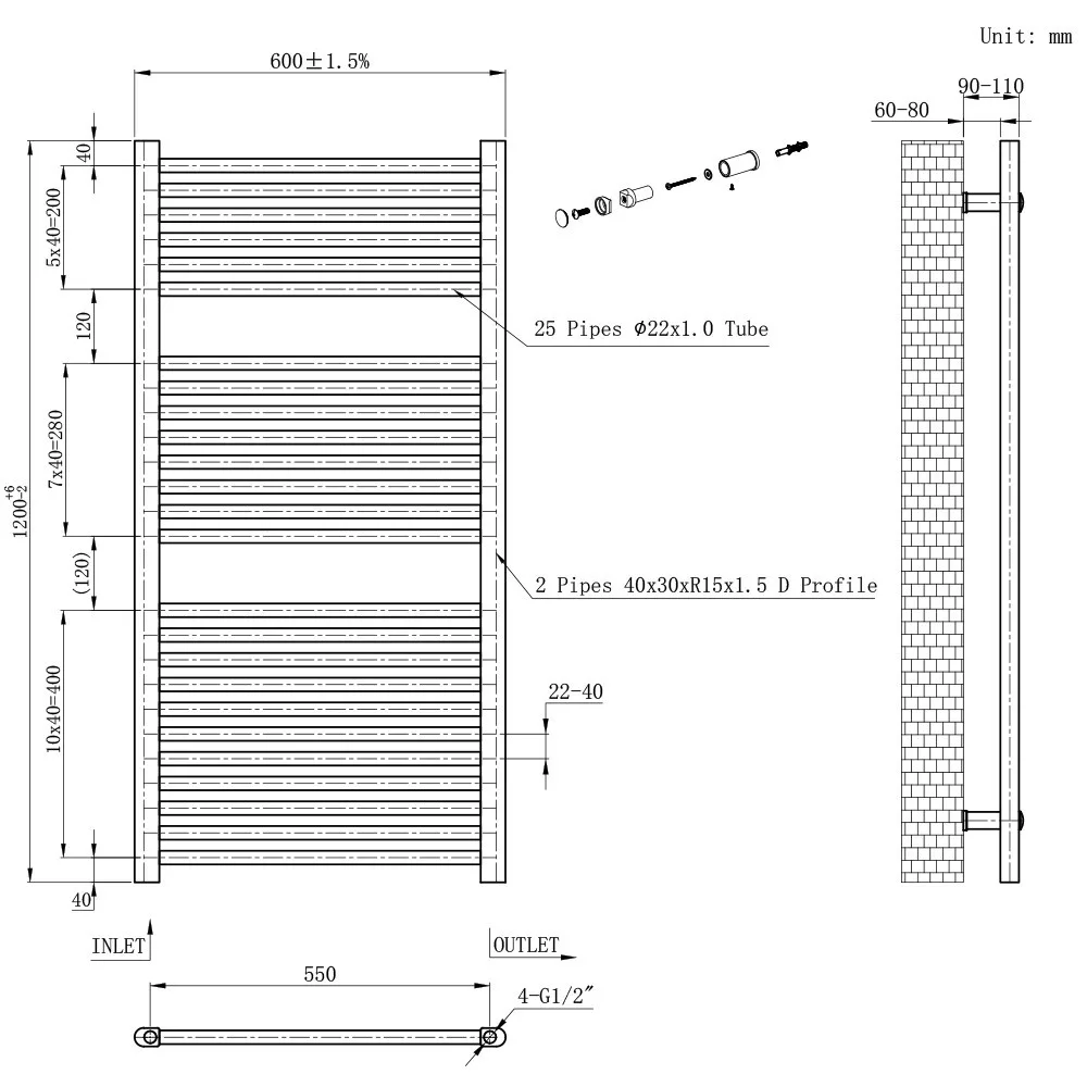 Grzejnik omocy 600 W jest idealny do średniej wielkości łazienek.Prosta tuba 25-elementowa oferuje dużą powierzchnię suszenia, dzięki czemu wygodnie zmieści się na niej kilka ręczników jednocześnie. Dzięki prostej konstrukcji ręczniki można łatwo powiesić, a ciepło jest równomiernie rozprowadzane na całej powierzchni.
