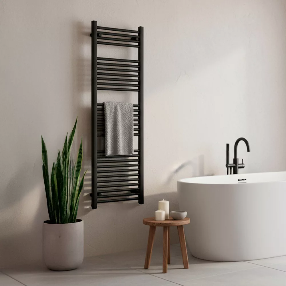Wybierz suszarkę do ręczników Leziter Straight 1400x500 mm w kolorze czarnym i spraw, by Twoja łazienka była stylowa, uporządkowana i zawsze przyjemnie ciepła!