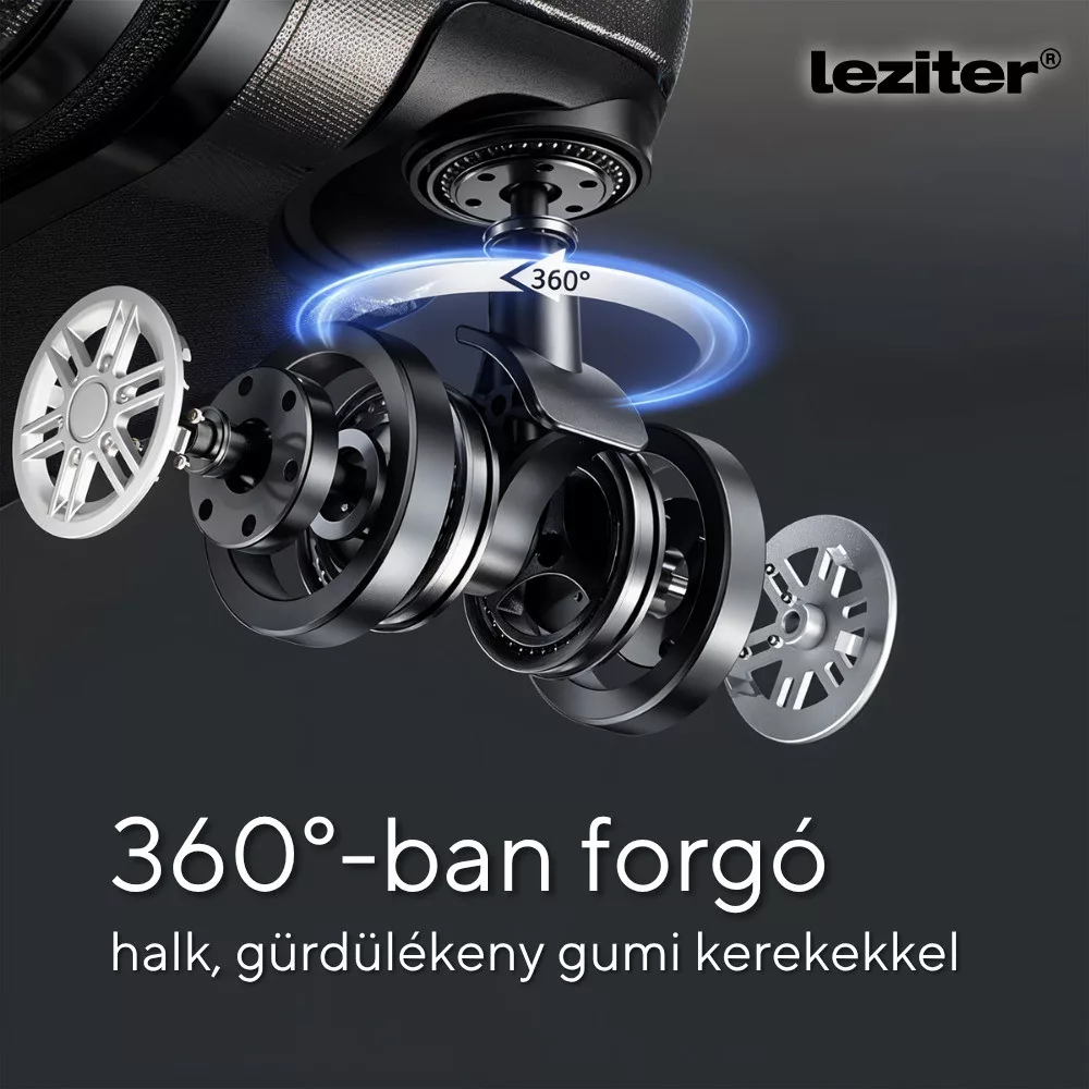 - Kerekek: 4 db dupla kerék / bőrönd, 360°-ban forgatható (a kabinbőrönd kerekek levehetők)