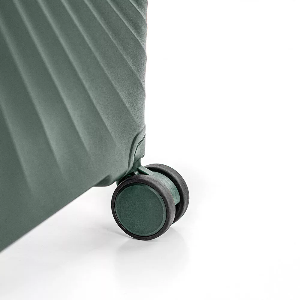 Oba elementy zestawu mają 4 podwójne kółka, które obracają się o 360°, dzięki czemu poruszają się płynnie w dowolnym kierunku. Kółka można zdemontować do walizki kabinowej, dzięki czemu rozmiar jest odpowiedni dla większości wymagań dotyczących bagażu kabinowego linii lotniczych. Ta funkcja jest szczególnie przydatna podczas podróży lotniczych.