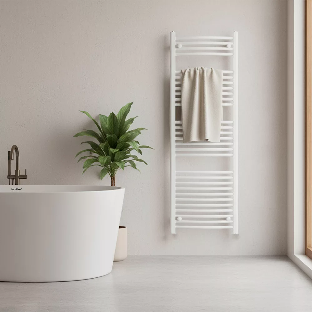 Wybierz grzejnik Leziter Curved Towel Dryer Radiator 1400x500 mm w kolorze białym i ciesz się doskonałym połączeniem nowoczesnego designu, niezawodnego ogrzewania i doskonałego wyglądu każdego dnia!