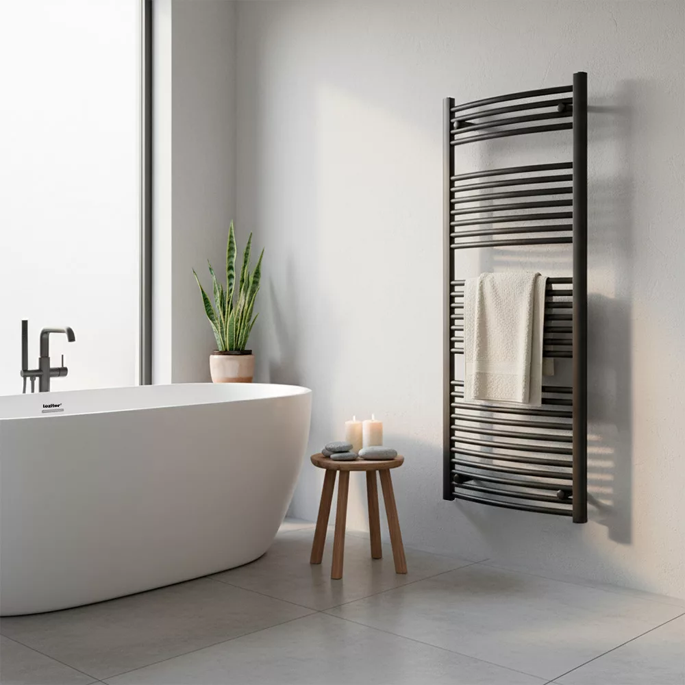 Wybierz model Leziter Curved Towel Dryer Radiator 1400x600 mm czarny i poczuj komfort nowoczesnej łazienki, w której styl i funkcjonalność spotykają się w doskonałej harmonii!