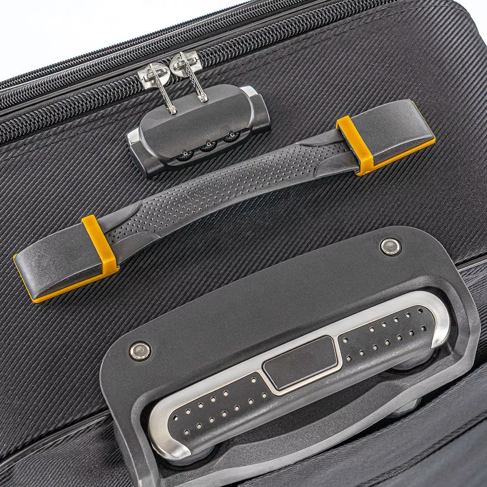 Metalowe ramię teleskopowe jest stabilne i łatwe w regulacji, dzięki czemu ciągnięcie walizki wymaga minimalnego wysiłku. Ergonomiczne uchwyty górne i boczne ułatwiają podnoszenie i przenoszenie w dowolnym miejscu.