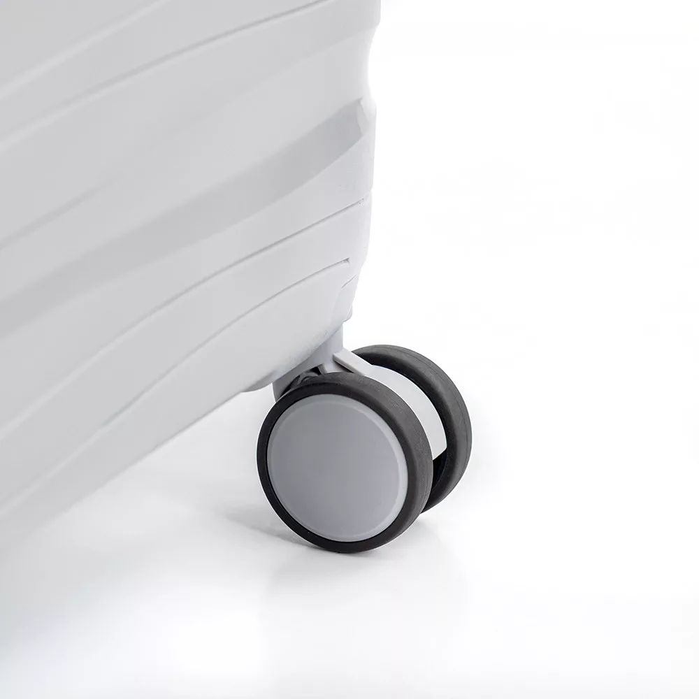 - Kółka: walizka kabinowa i średnia: 4 podwójne kółka, obrót o 360° (walizka kabinowa z odłączanymi kółkami)
