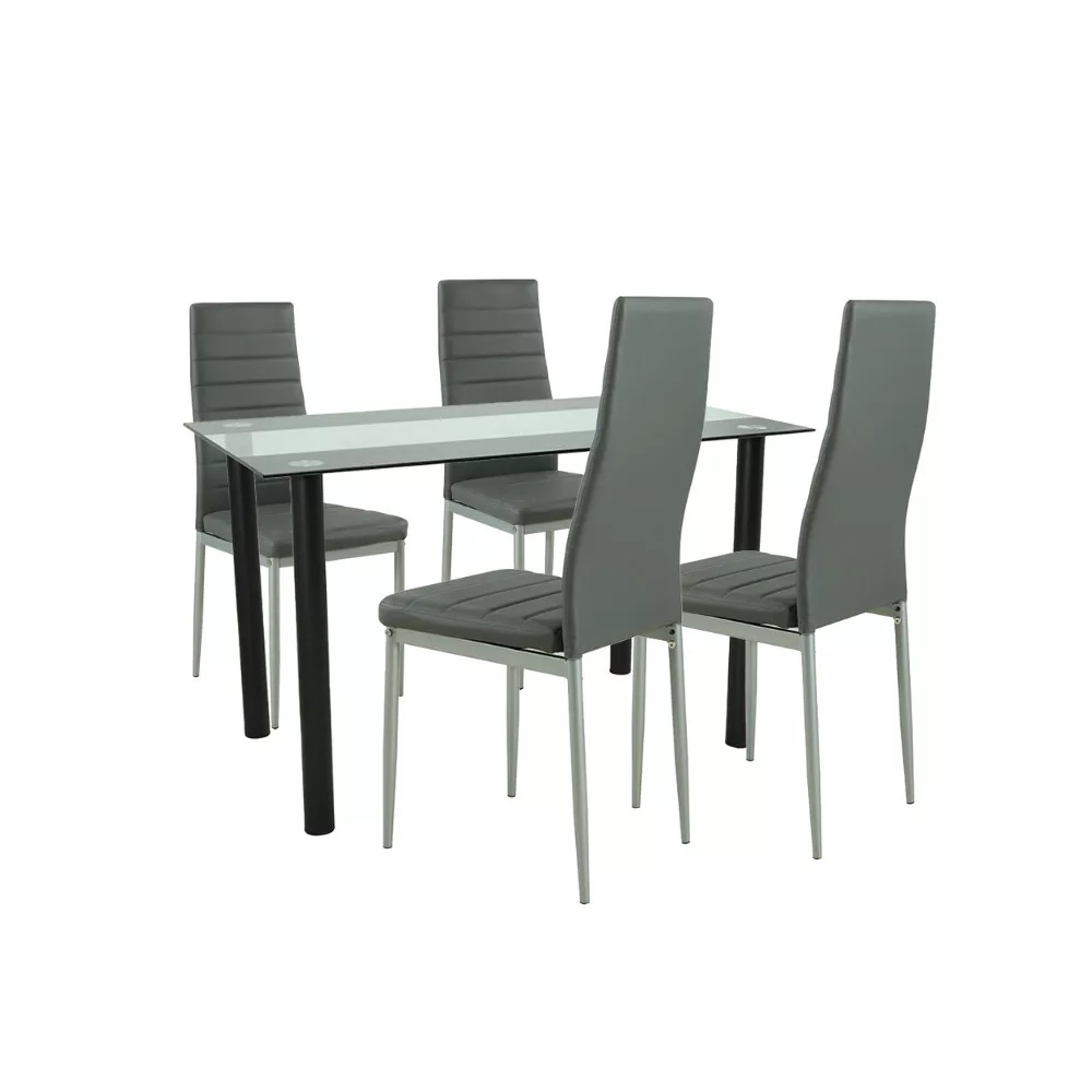 Zestaw jadalniany Mezza 4+1 to idealne połączenie nowoczesnego designu i praktyczności. Szaro-szare połączenie kolorystyczne stołu Riona i krzeseł Tino NOVA stanowi eleganckie i wygodne rozwiązanie do każdej nowoczesnej jadalni lub kuchni.