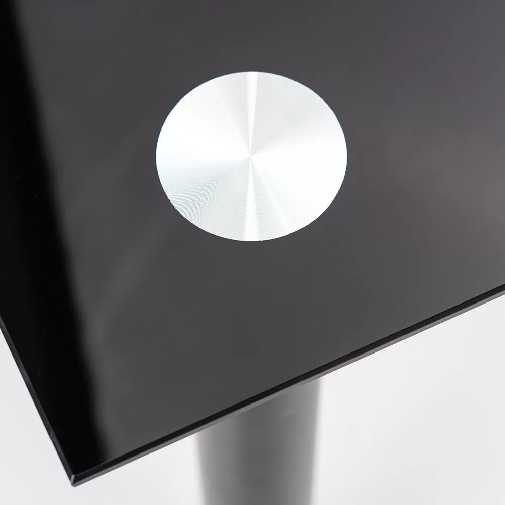 A porszórt acél váz és az edzett üveg kombinációja egy hosszú távon is megbízható étkezőasztalt eredményez, amely nemcsak esztétikus, hanem kiemelkedően stabil és könnyen kezelhető is.