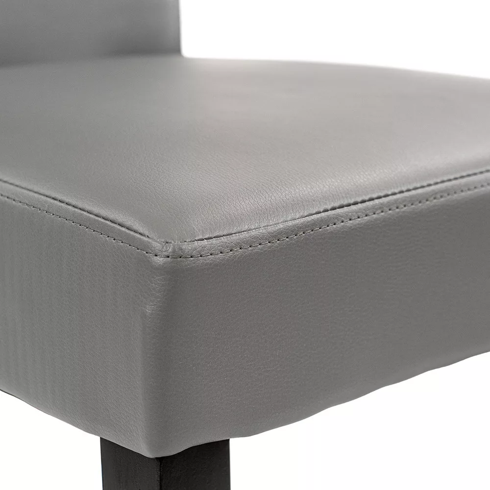 Krzesła Kelly firmy Leziter zapewniają dodatkowy komfort podczas każdego posiłku. Szara tapicerka ze skóry ekologicznej jest czysta i stylowa, a także łatwa w czyszczeniu, co czyni ją idealnym wyborem dla rodzin, restauracji lub przestrzeni biurowych. Powierzchnia siedziska wykonana jest z pianki pochodzącej z recyklingu, która jest nie tylko wygodna, ale także przyjazna dla środowiska. Solidne sosnowe nogi zapewniają bezpieczeństwo i trwałość.