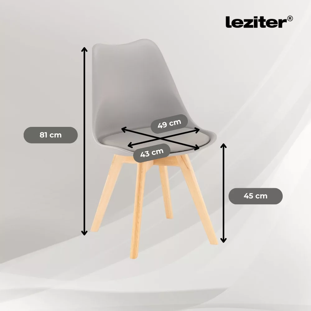 Szare krzesła do jadalni Silla idealnie pasują do stołu. Ich łatwa w czyszczeniu powierzchnia z polipropylenu i szara tapicerka z PVC zapewniają długotrwały komfort. Nogi w kolorze buku nie tylko zapewniają stabilne podparcie, ale także wnoszą naturalne ciepło do ogólnego wyglądu.