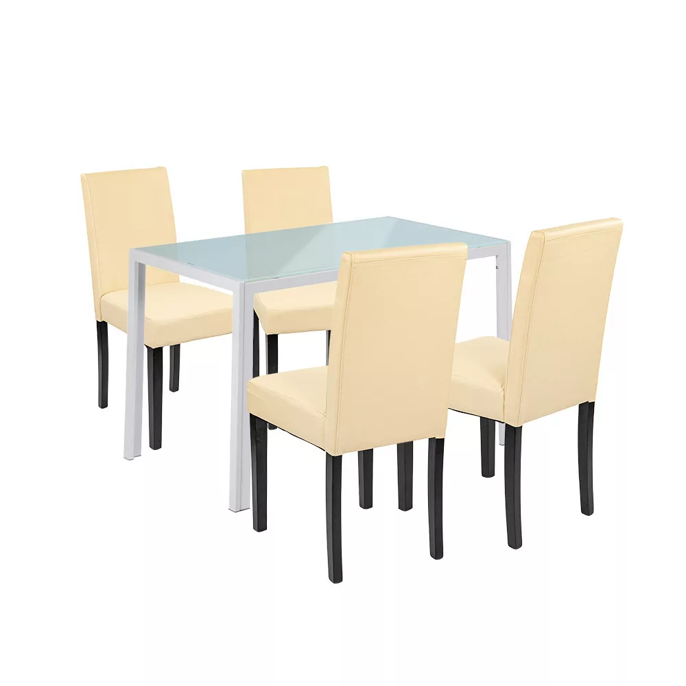 Masz już dość chwiejących się stołów i niewygodnych, skrzypiących krzeseł, które psują atmosferę wspólnych posiłków? Podczas rodzinnych obiadów, uroczystości czy spotkań z przyjaciółmi każdy szuka komfortu i stylu - ale niestabilny stół lub trudne do czyszczenia powierzchnie są po prostu uciążliwe. Zwłaszcza jeśli mieszkasz z małymi dziećmi lub częstymi gośćmi, może to być ciągłe źródło stresu. Zestaw jadalniany Leziter Mira 4+1 w kolorze białym i beżowym rozwiązuje ten problem raz na zawsze: stylowy zestaw z czterema wygodnymi krzesłami i solidnym, nowoczesnym szklanym stołem jadalnianym - idealny do domu, biura lub gastronomii.