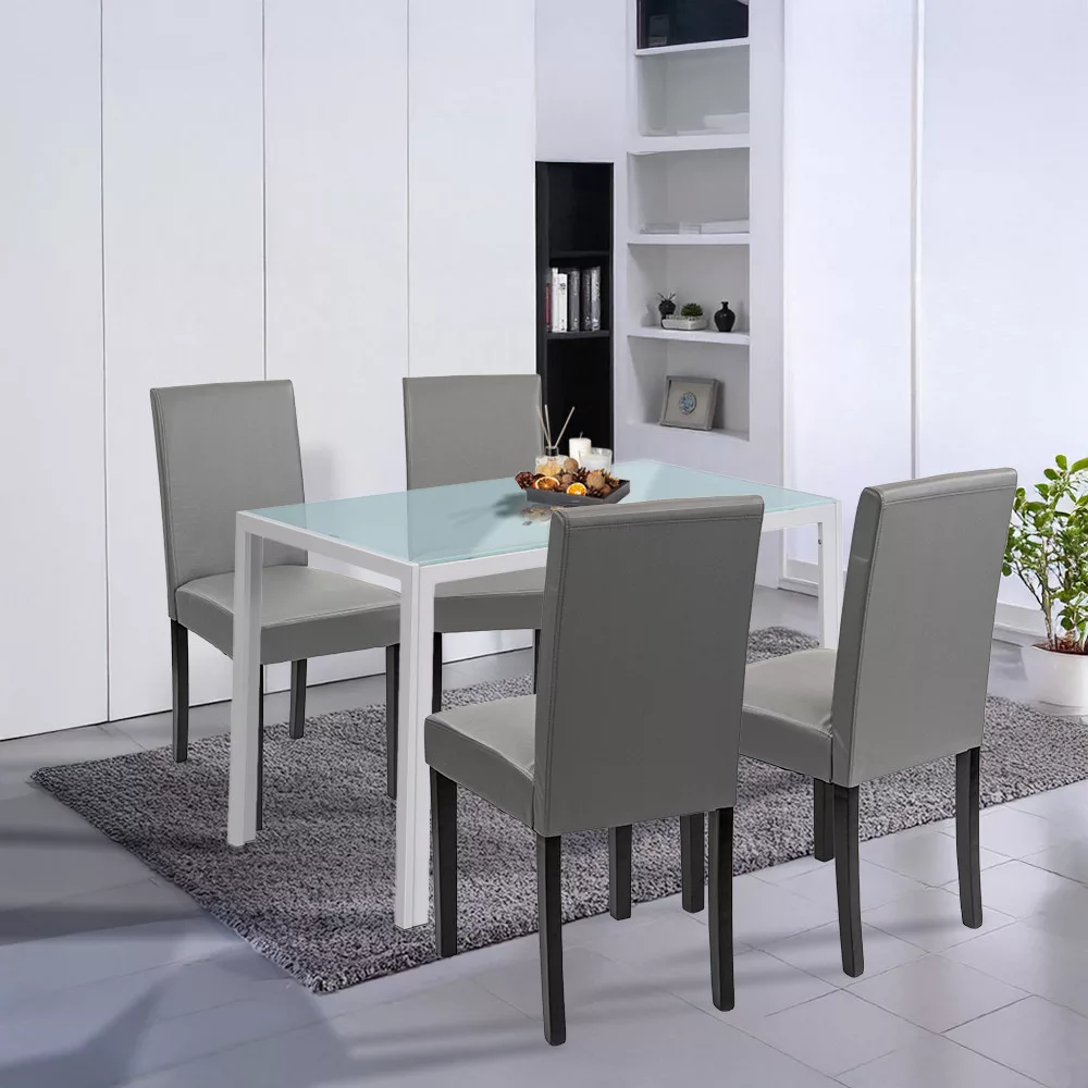 Masz już dość chwiejących się stołów i niewygodnych, skrzypiących krzeseł, które psują atmosferę wspólnych posiłków? Podczas rodzinnych obiadów, uroczystości czy spotkań z przyjaciółmi każdy szuka komfortu i stylu - ale niestabilny stół lub trudne do czyszczenia powierzchnie są po prostu uciążliwe. Zwłaszcza jeśli mieszkasz z małymi dziećmi lub częstymi gośćmi, może to być ciągłe źródło stresu. Zestaw jadalniany Leziter Mira 4+1 w kolorze białym i szarym rozwiązuje ten problem raz na zawsze: stylowy zestaw z czterema wygodnymi krzesłami i solidnym, nowoczesnym szklanym stołem jadalnianym - idealny do domu, biura lub gastronomii.
