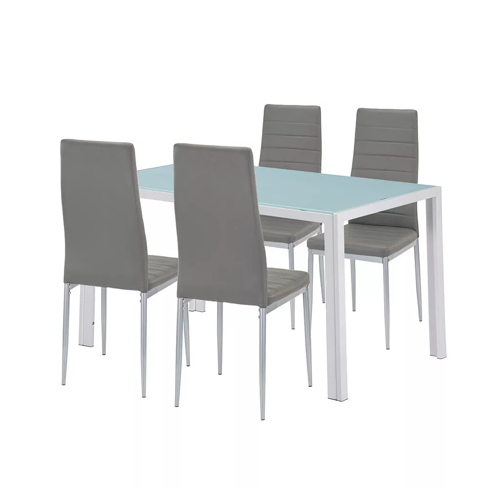 Zestaw jadalniany Mabel 4+1 to idealny wybór dla każdego, kto chce urządzić małą lub średniej wielkości jadalnię w nowoczesnym stylu. Szklany stół zapewnia światło i poczucie przestronności, a szare krzesła tworzą elegancką, ale przyjazną atmosferę. Charakterystyczny wygląd zestawu jest dopasowany dołatwej konserwacji - z powierzchniami do wycierania i wytrzymałą konstrukcją.
