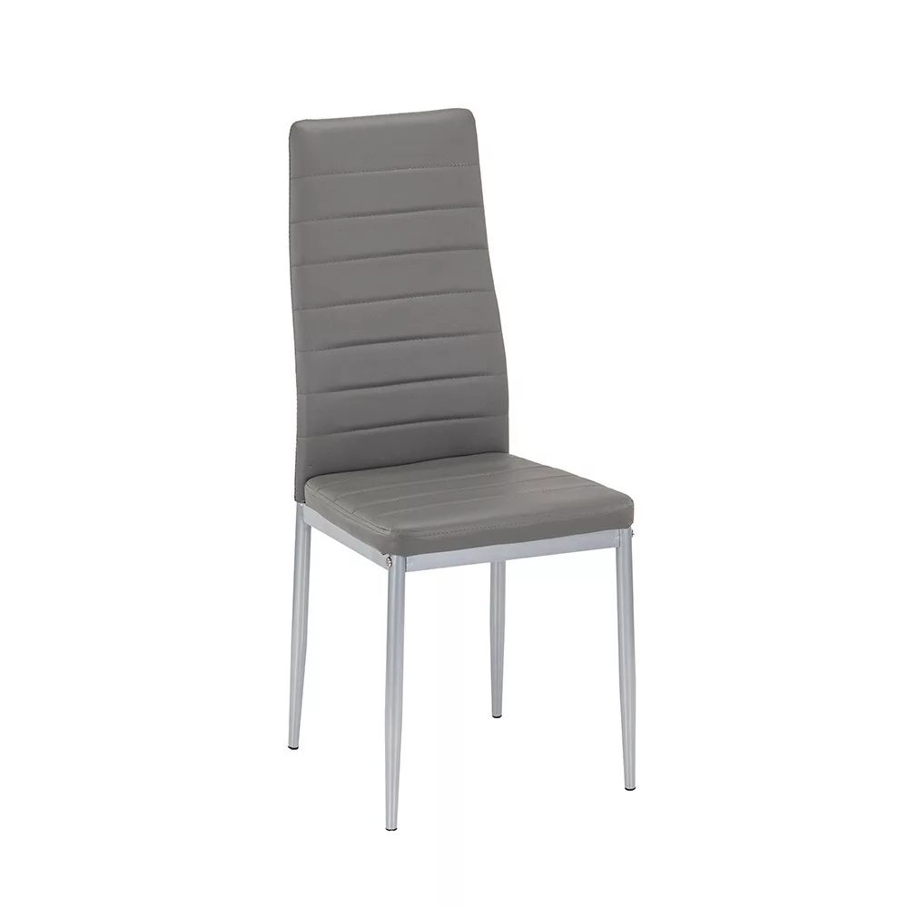 - Materiał krzesła: siedzisko z szarej skóry tekstylnej, czarne żelazne nogi