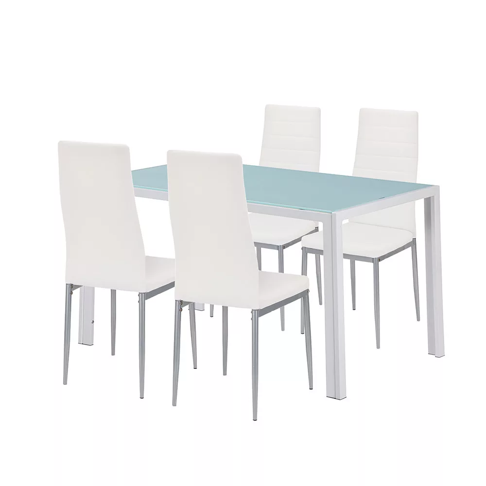 Zestawdo jadalni Mabel4+1 to idealny wybór, jeśli chcesz połączyć styl, wygodę i praktyczność. Stół o czystych liniach wykonany jest z hartowanego, poddanego obróbce cieplnej, odpornego na uderzenia szklanego blatu i malowanych proszkowo na biało metalowych nóg - połączenie, które zarówno rozświetla przestrzeń, jak i zapewnia stabilność w codziennym użytkowaniu. Dzięki wymiarom 140 × 80 cm stół idealnie sprawdzi się w mniejszych kuchniach i jadalniach, zapewniając jednocześnie komfortowe spożywanie posiłków nawet 4-6 osobom .