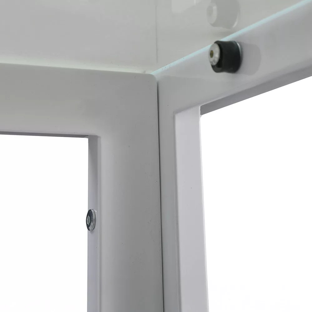 - Blat z hartowanego szkła (grubość 8 mm) - poddany obróbce cieplnej i odporny na uderzenia dla dodatkowego bezpieczeństwa