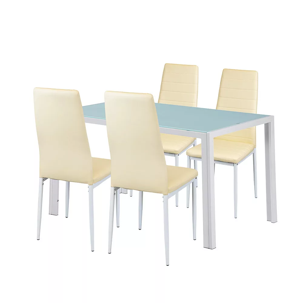 Zestaw jadalniany Liana 4+1 - Nowoczesny styl z beżowymi krzesłami i stołem z hartowanego szkła