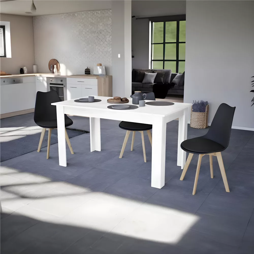 Stół York został wykonany z wysokiej jakości płyty meblowej, która gwarantuje trwałość i długą żywotność. Biały blat mebla jest ponadczasowy i odporny na codzienne użytkowanie, dzięki czemu możesz cieszyć się pięknem i funkcjonalnością stołu przez długi czas.