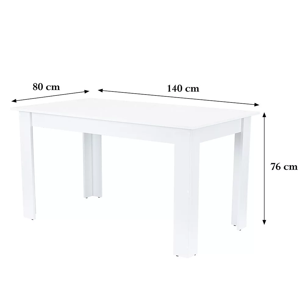 Wymiary stołu są idealne do spożywania posiłków dla sześciu osób. Przy długości 140 cm, szerokości 80 cm i wysokości 76 cm, zapewnia dużo miejsca.
