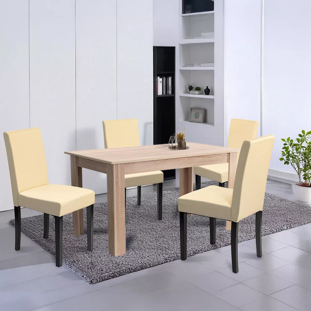 Masz dość chwiejących się stołów i niewygodnych, skrzypiących krzeseł, które psują atmosferę posiłków? Podczas codziennych obiadów, uroczystości rodzinnych czy spotkań z przyjaciółmi, każdy szuka komfortu i przyjemnej atmosfery - ale niestabilny stół lub trudne do czyszczenia powierzchnie są po prostu uciążliwe. Zwłaszcza jeśli mieszkasz z małymi dziećmi lub częstymi gośćmi, może to być źródłem ciągłego stresu. Zestaw Leziter Leon 4+1 Dining Set w kolorze Sonoma Oak Beige rozwiązuje ten problem raz na zawsze: kompaktowy, ale elegancki zestaw z czterema wygodnymi krzesłami i solidnym, praktycznym stołem - idealny do domu, biura lub gastronomii.