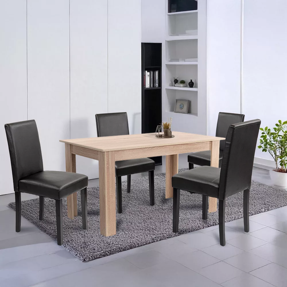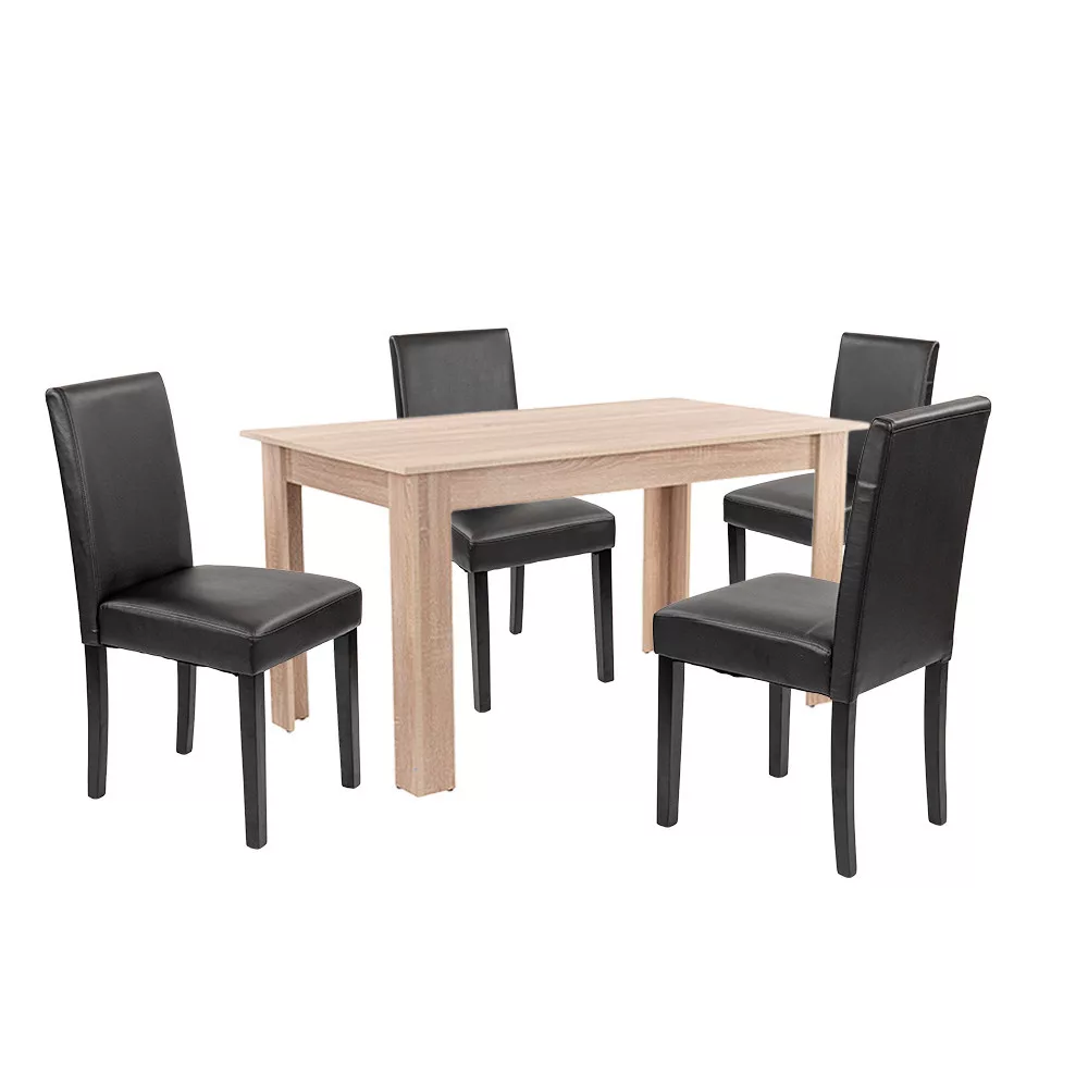 Masz dość chwiejących się stołów i niewygodnych, skrzypiących krzeseł, które psują atmosferę posiłków? Podczas codziennych obiadów, uroczystości rodzinnych czy spotkań z przyjaciółmi, każdy szuka komfortu i przyjemnej atmosfery - ale niestabilny stół lub trudne do czyszczenia powierzchnie są po prostu uciążliwe. Zwłaszcza jeśli mieszkasz z małymi dziećmi lub częstymi gośćmi, może to być źródłem ciągłego stresu. Zestaw Leziter Leon 4+1 Dining Set w kolorze Sonoma Oak Black rozwiązuje ten problem raz na zawsze: kompaktowy, ale stylowy zestaw z czterema wygodnymi krzesłami i solidnym, praktycznym stołem - idealny do domu, biura lub gastronomii.