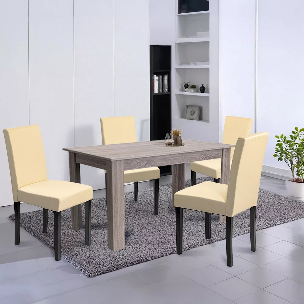 Masz dość chwiejących się stołów i niewygodnych, skrzypiących krzeseł, które psują atmosferę posiłków? Podczas codziennych obiadów, uroczystości rodzinnych czy spotkań z przyjaciółmi każdy szuka komfortu i przyjemnej atmosfery - ale niestabilny stół lub trudne do czyszczenia powierzchnie są po prostu uciążliwe. Zwłaszcza jeśli mieszkasz z małymi dziećmi lub częstymi gośćmi, może to być źródłem ciągłego stresu. Zestaw Leziter Leon 4+1 Dining Set w kolorze York Oak Beige rozwiązuje ten problem raz na zawsze: kompaktowy, ale elegancki zestaw z czterema wygodnymi krzesłami i solidnym, praktycznym stołem - idealny do domu, biura lub gastronomii.