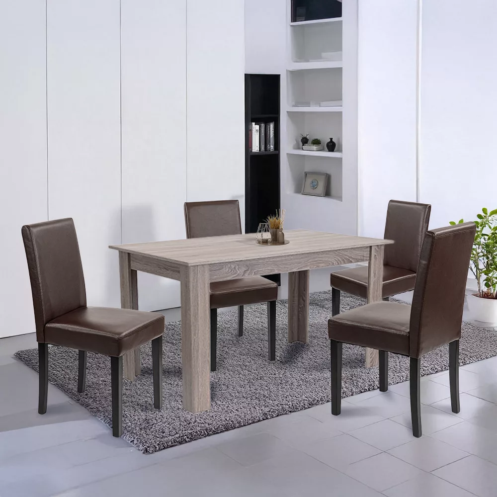 Masz dość chwiejących się stołów i niewygodnych, skrzypiących krzeseł, które psują atmosferę posiłków? Podczas codziennych obiadów, uroczystości rodzinnych czy spotkań z przyjaciółmi, każdy szuka komfortu i przyjemnej atmosfery - ale niestabilny stół lub trudne do czyszczenia powierzchnie są po prostu uciążliwe. Zwłaszcza jeśli mieszkasz z małymi dziećmi lub częstymi gośćmi, może to być źródłem ciągłego stresu. Zestaw Leziter Leon 4+1 Dining Set w kolorze York Oak Brown rozwiązuje ten problem raz na zawsze: kompaktowy, ale stylowy zestaw z czterema wygodnymi krzesłami i solidnym, praktycznym stołem - idealny do domu, biura lub gastronomii.