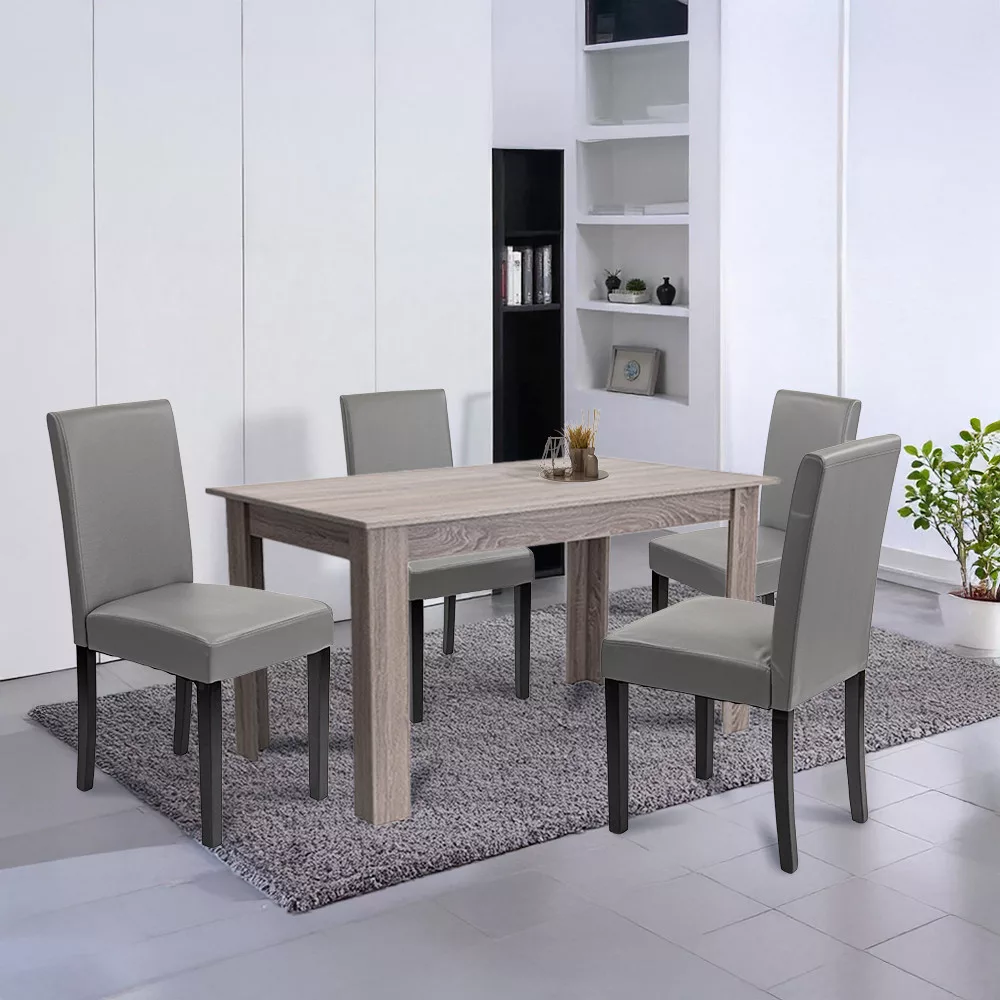 Masz dość chwiejących się stołów i niewygodnych, skrzypiących krzeseł, które psują atmosferę posiłków? Podczas codziennych obiadów, uroczystości rodzinnych czy spotkań z przyjaciółmi każdy szuka komfortu i przyjemnej atmosfery - ale niestabilny stół lub trudne do czyszczenia powierzchnie są po prostu uciążliwe. Zwłaszcza jeśli mieszkasz z małymi dziećmi lub częstymi gośćmi, może to być źródłem ciągłego stresu. Zestaw Leziter Leon 4+1 Dining Set w kolorze York Oak Grey rozwiązuje ten problem raz na zawsze: kompaktowy, ale stylowy zestaw z czterema wygodnymi krzesłami i solidnym, praktycznym stołem - idealny do domu, biura lub gastronomii.