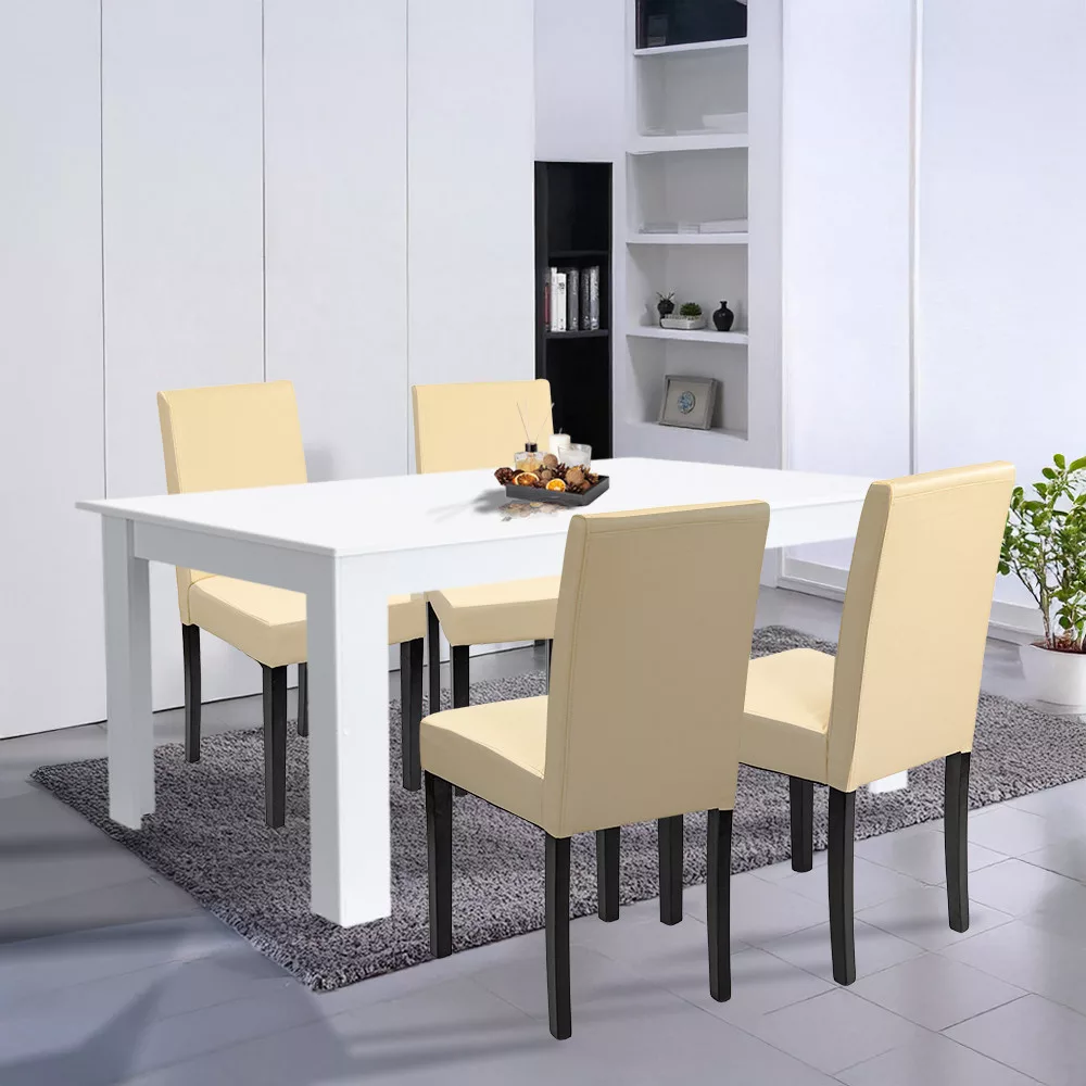 Masz dość chwiejących się stołów i niewygodnych, skrzypiących krzeseł, które psują atmosferę posiłków? Podczas codziennych obiadów, uroczystości rodzinnych czy spotkań z przyjaciółmi każdy szuka komfortu i przyjemnej atmosfery - ale niestabilny stół lub trudne do czyszczenia powierzchnie są po prostu uciążliwe. Zwłaszcza jeśli mieszkasz z małymi dziećmi lub częstymi gośćmi, może to być źródłem ciągłego stresu. Zestaw do jadalni Leziter Leon 4+1 w kolorze białym i beżowym rozwiązuje ten problem raz na zawsze: praktyczny, ale stylowy zestaw w praktycznym rozmiarze, oferujący cztery wygodne krzesła i solidny, praktyczny stół do jadalni - idealny do domu, biura lub gastronomii.