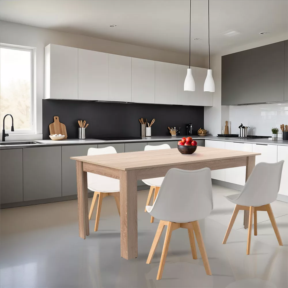 Zestaw jadalniany Lola 4+1 firmy Leziter to idealny wybór do nowoczesnych domów, restauracji i stylowych kuchni biurowych. Zestaw składa się z 4 krzeseł i 1 stołu, harmonijnego połączenia popularnego krzesła Silla i standardowego stołu Yorki, łączącego funkcjonalność z ponadczasowym designem. Zestaw jadalniany jest idealny dla 4 osób, a jego wymiary sprawiają, że jest praktyczny w średniej wielkości pomieszczeniach.
