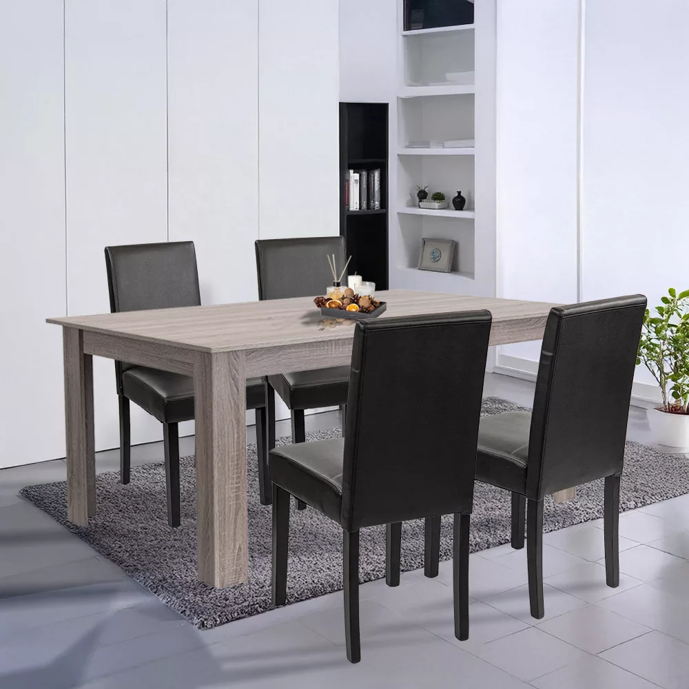 Masz dość chwiejących się stołów i niewygodnych, skrzypiących krzeseł, które psują atmosferę posiłków? Podczas codziennych obiadów, uroczystości rodzinnych czy spotkań z przyjaciółmi, każdy szuka komfortu i przyjemnej atmosfery - ale niestabilny stół lub trudne do czyszczenia powierzchnie są po prostu uciążliwe. Zwłaszcza jeśli mieszkasz z małymi dziećmi lub częstymi gośćmi, może to być źródłem ciągłego stresu. Leziter Leon 4+1 Dining Set in York Oak - Black rozwiązuje ten problem raz na zawsze: praktyczny, ale stylowy zestaw w praktycznym rozmiarze, oferujący cztery wygodne krzesła i solidny, praktyczny stół jadalniany - idealny do domu, biura lub gastronomii.