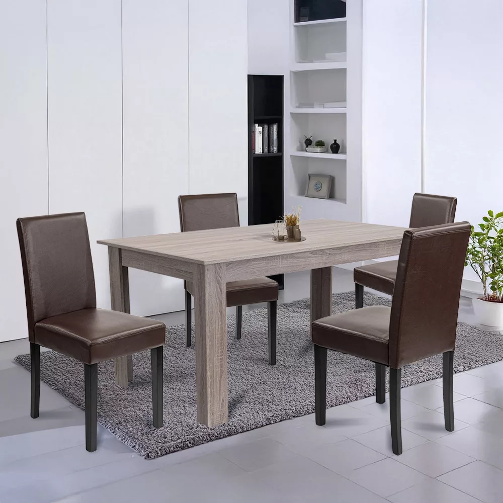 Masz dość chwiejących się stołów i niewygodnych, skrzypiących krzeseł, które psują atmosferę posiłków? Podczas codziennych obiadów, uroczystości rodzinnych czy spotkań z przyjaciółmi każdy szuka komfortu i przyjemnej atmosfery - ale niestabilny stół lub trudne do czyszczenia powierzchnie są po prostu uciążliwe. Zwłaszcza jeśli mieszkasz z małymi dziećmi lub częstymi gośćmi, może to być źródłem ciągłego stresu. Zestaw Leziter Leon 4+1 Dining Set w kolorze York Oak Brown rozwiązuje ten problem raz na zawsze: praktyczny, ale stylowy zestaw w praktycznym rozmiarze, oferujący cztery wygodne krzesła i solidny, praktyczny stół jadalniany - idealny do domu, biura lub gastronomii.