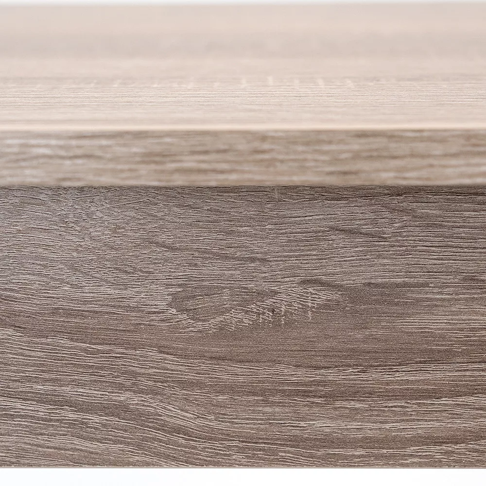 Stół do jadalni Yorki od Leziter tworzy świeżą, nowoczesną atmosferę w pomieszczeniu dzięki kolorowi dębu York i czystym liniom. Jego praktyczny rozmiar (160x80x76 cm) sprawia, że wygodnie pasuje do średnich i dużych jadalni, w których przestronna konstrukcja zapewnia wystarczająco dużo miejsca dla czterech osób, ale w razie potrzeby może wygodnie pomieścić do sześciu osób. Gruby, wytrzymały blat jest trwały i odporny na zarysowania, a metalowe wzmocnienia narożników zapewniają dodatkową stabilność. Dzięki panelowej konstrukcji montaż jest szybki i łatwy, dzięki czemu możesz szybko cieszyć się komfortem i elegancją swojej nowej jadalni.