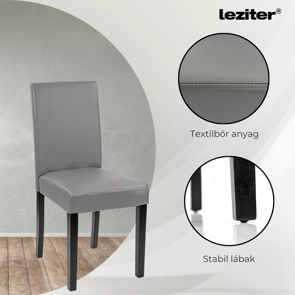Krzesła Leziter Kelly oferują dodatkowy komfort dla każdego siedzenia. Szara tapicerka ze skóry ekologicznej zapewnia nowoczesny, czysty wygląd, a jednocześnie jest łatwa do utrzymania w czystości - jest to szczególnie praktyczny wybór dla rodzin, kawiarni lub restauracji. Pianka z recyklingu wewnątrz powierzchni siedziska jest nie tylko wygodna, ale także przyjazna dla środowiska. Solidne sosnowe nogi zapewniają bezpieczeństwo i długą żywotność. To sprawia, że krzesło Kelly jest idealnym wyborem do restauracji, stołówek biurowych, miejsc eventowych i użytku domowego.