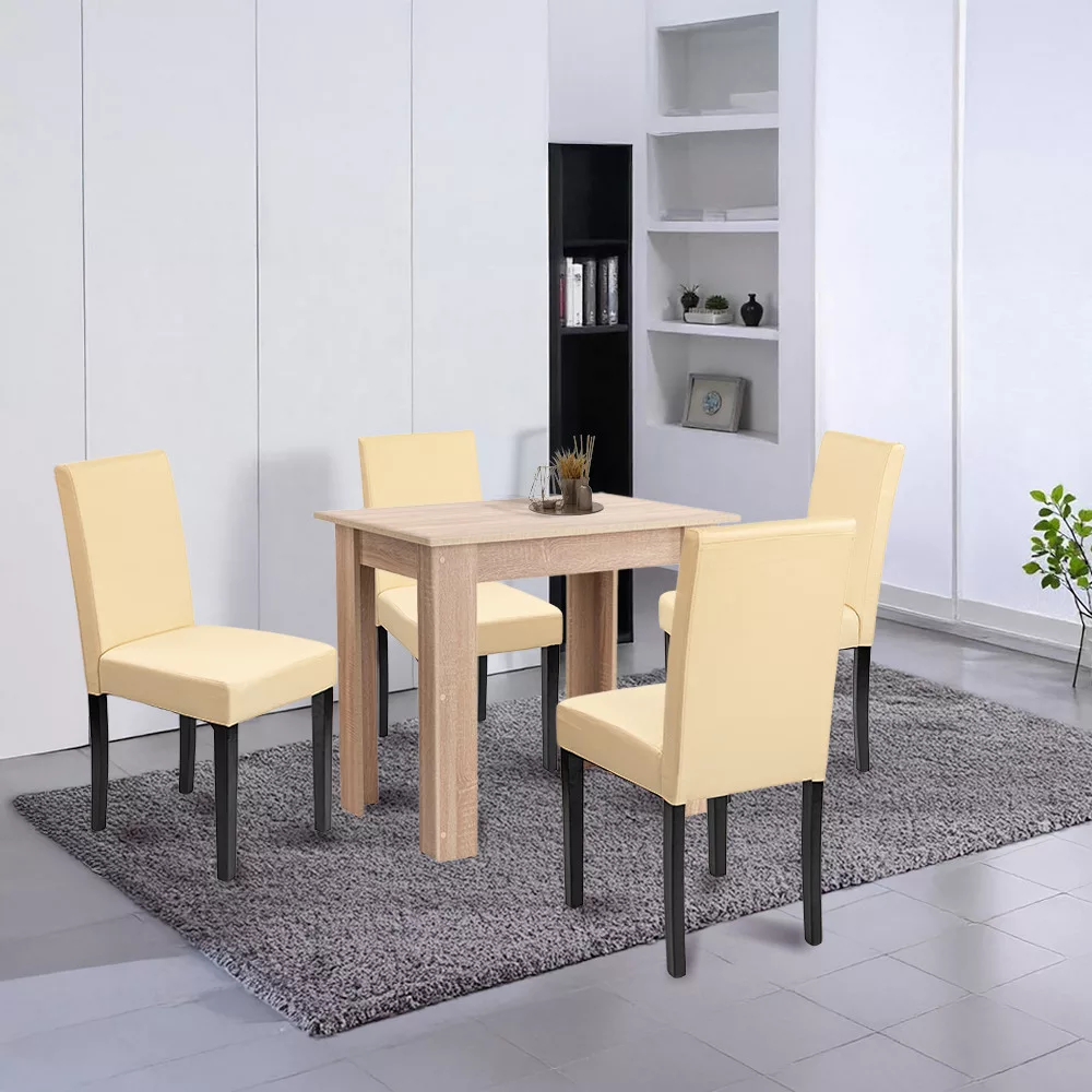 Masz dość chwiejących się stołów i niewygodnych, skrzypiących krzeseł, które psują atmosferę posiłków? Podczas codziennych obiadów, uroczystości rodzinnych czy spotkań z przyjaciółmi, każdy szuka komfortu i przyjemnej atmosfery - ale niestabilny stół lub trudne do czyszczenia powierzchnie są po prostu uciążliwe. Zwłaszcza jeśli mieszkasz z małymi dziećmi lub częstymi gośćmi, może to być źródłem ciągłego stresu. Zestaw Leziter Leon 4+1 Dining Set w kolorze Sonoma Oak Beige rozwiązuje ten problem raz na zawsze: kompaktowy, ale elegancki zestaw z czterema wygodnymi krzesłami i solidnym, praktycznym stołem - idealny do domu, biura lub gastronomii.