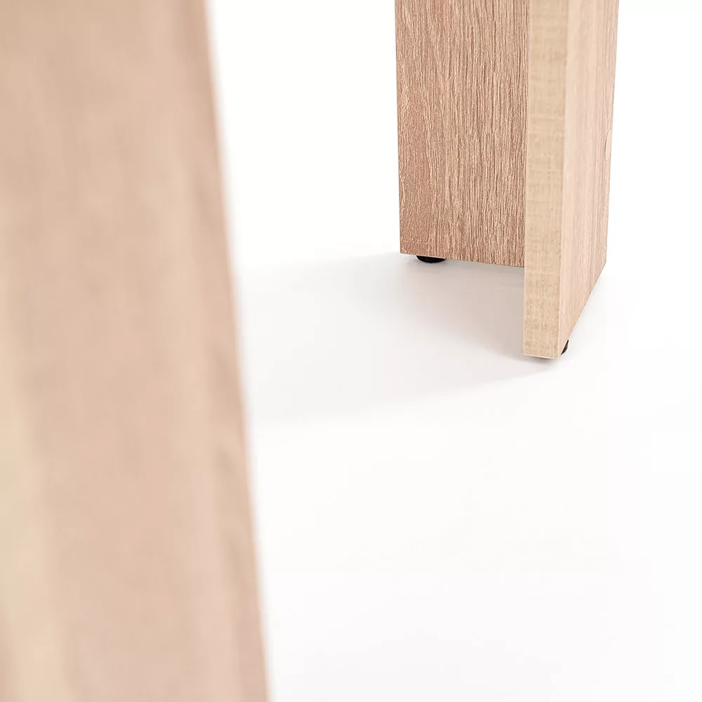 Stół do jadalni Yorki od Leziter tworzy świeżą, nowoczesną atmosferę w pomieszczeniu dzięki kolorowi dębu sonoma i czystym liniom. Jego kompaktowe wymiary (86x60x76 cm) sprawiają, że idealnie nadaje się do mniejszych przestrzeni, ale nadal zapewnia wystarczająco dużo miejsca dla czterech osób. Gruby, wytrzymały blat jest ponadczasowy i odporny na zarysowania, a metalowe wzmocnienia narożników zapewniają dodatkową stabilność. Dzięki panelowej konstrukcji montaż jest szybki i łatwy, dzięki czemu możesz szybko cieszyć się komfortem i elegancją swojej nowej jadalni.