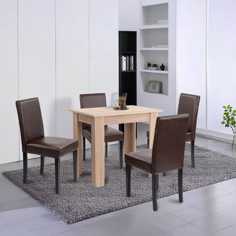Masz dość chwiejących się stołów i niewygodnych, skrzypiących krzeseł, które psują atmosferę posiłków? Podczas codziennych obiadów, uroczystości rodzinnych czy spotkań z przyjaciółmi, każdy szuka komfortu i przyjemnej atmosfery - ale niestabilny stół lub trudne do czyszczenia powierzchnie są po prostu uciążliwe. Zwłaszcza jeśli mieszkasz z małymi dziećmi lub częstymi gośćmi, może to być źródłem ciągłego stresu. Zestaw Leziter Leon 4+1 Dining Set in Sonoma Oak - Brown rozwiązuje ten problem raz na zawsze: kompaktowy, ale elegancki zestaw z czterema wygodnymi krzesłami i solidnym, praktycznym stołem - idealny do domu, biura lub gastronomii.