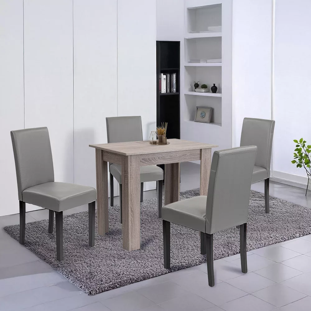 Masz dość chwiejących się stołów i niewygodnych, skrzypiących krzeseł, które psują atmosferę posiłków? Podczas codziennych obiadów, uroczystości rodzinnych czy spotkań z przyjaciółmi każdy szuka komfortu i przyjemnej atmosfery - ale niestabilny stół lub trudne do czyszczenia powierzchnie są po prostu uciążliwe. Zwłaszcza jeśli mieszkasz z małymi dziećmi lub częstymi gośćmi, może to być źródłem ciągłego stresu. Zestaw Leziter Leon 4+1 Dining Set w kolorze York Oak Grey rozwiązuje ten problem raz na zawsze: kompaktowy, ale elegancki zestaw z czterema wygodnymi krzesłami i solidnym, praktycznym stołem - idealny do domu, biura lub gastronomii.