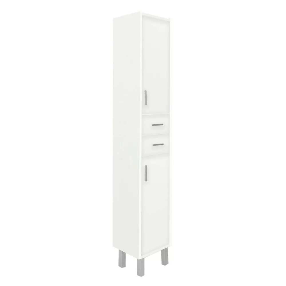 Mebel łazienkowy zajmuje niewiele miejsca, ale posiada dwie jednodrzwiowe szafki i dwie pojemne szuflady, w których można wygodnie przechowywać kosmetyki łazienkowe. Dzięki niewielkim rozmiaromnadaje się również do mniejszych łazienek, na przykład w mieszkaniach z prefabrykatów. Produkt wykonano z wysokiej jakości płyty meblowej i wyposażono w dopasowane kolorystycznie zamki krawędziowe. Meble łazienkowe dostępne są w wersji stojącej.