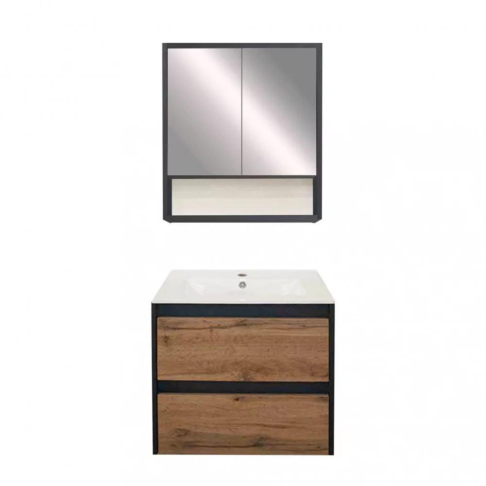 Oprócz szafki z drzwiczkami, górny mebel posiada także otwartą półkę , dzięki czemu korzystanie z niego jest jeszcze wygodniejsze. Niezaprzeczalną zaletą tego produktu jest to, że może być używany do wszystkich potrzeb bez potrzeby stosowania dodatkowych mebli, dzięki górnej i dolnej jednostce. Produkt wykonany jest z wysokiej jakości płyty meblowej i dostarczany z dopasowanymi kolorystycznie zamkami krawędziowymi. Meble łazienkowe są dostępne w wersji podwieszanej.