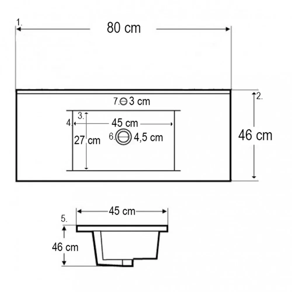 - Rozmiar szafki dolnej: 80 × 55 × 46 cm