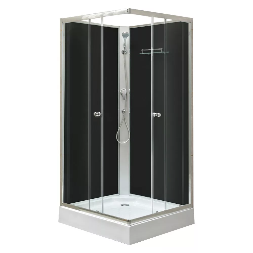 Polo Black II 90x90 cm kwadratowa kabina prysznicowa z brodzikiem z czarnym panelem tylnym