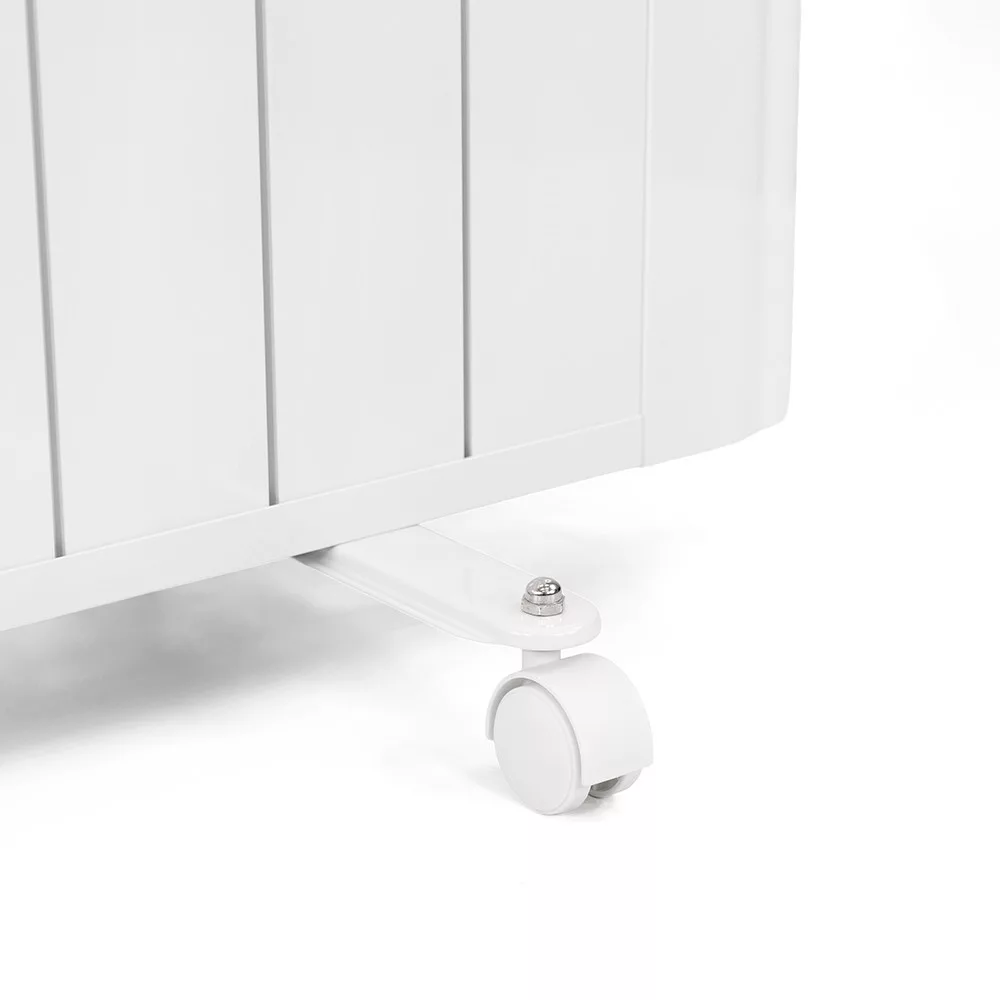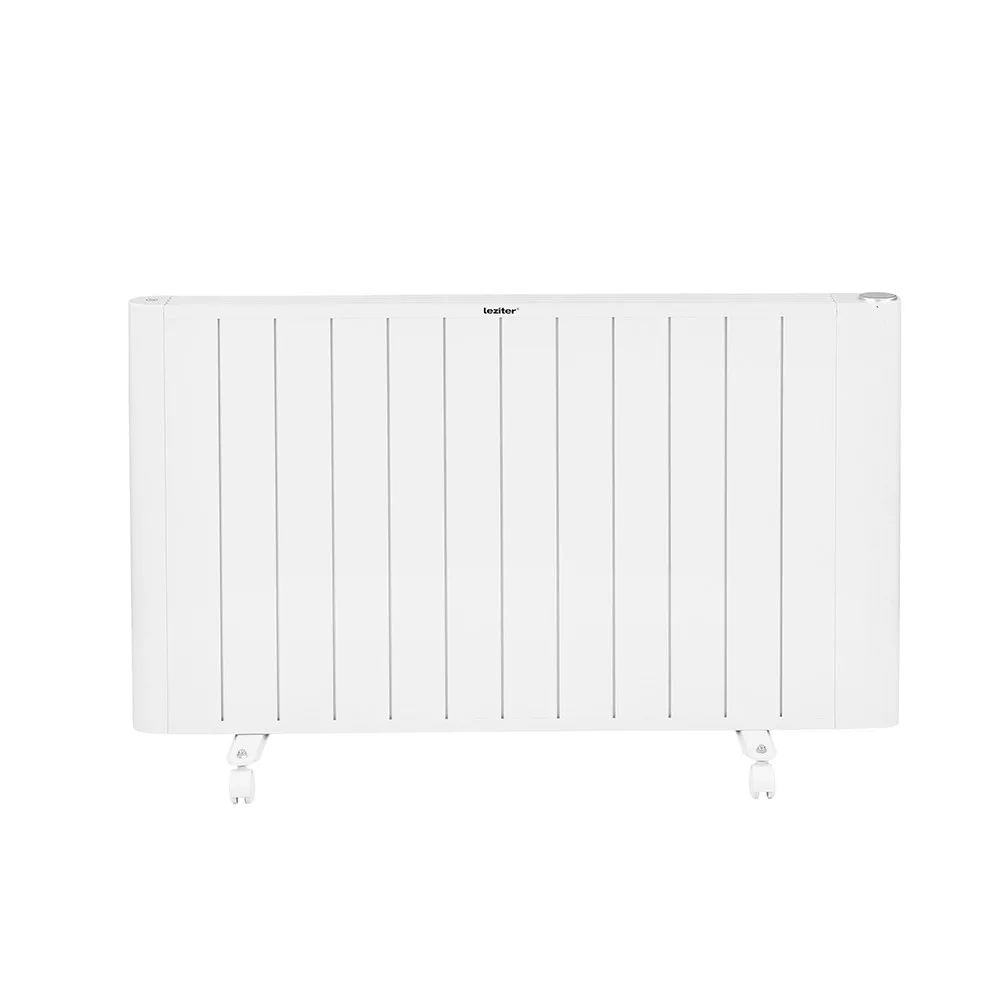 Grzejnik elektryczny Leziter Solis zajmuje niewiele miejsca, gdy jest zamontowany na ścianie, natomiast nóżki i kółka pozwalają na używanie go jako grzejnika wolnostojącego. W razie potrzeby można go łatwo przenosić z jednego pomieszczenia do drugiego, zachowując stabilność, bezpieczeństwo i stałą pozycję.