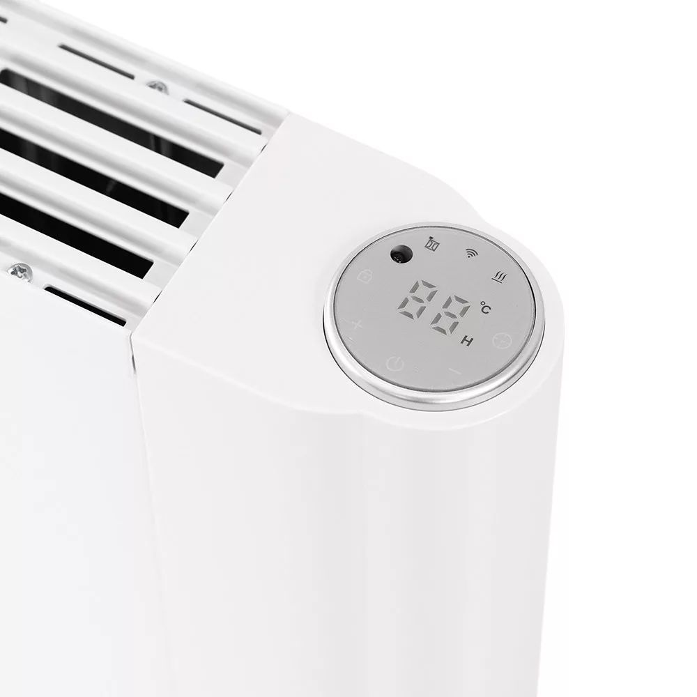 Zabezpieczenie przed przegrzaniem gwarantuje niezawodne działanie, a stopień ochrony IP24 umożliwia korzystanie z urządzenia nawet w łazienkach. Okrągły cyfrowy panel sterowania wpuszczony w górną część zapewnia łatwą i przejrzystą obsługę: wyświetlacz pokazuje ustawioną temperaturę, a okrągłe ikony wskazują stan funkcji.