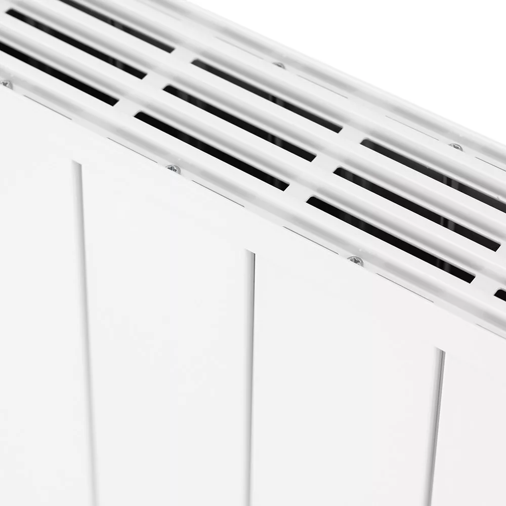 Obudowa grzejnika wykonana jest z aluminium, materiału, który jest zarówno trwały, jak i odporny na rdzę, a także doskonale przewodzi ciepło. Pionowe żeberka optycznie wysmuklają powierzchnię, a stonowany biały kolor doskonale komponuje się z niemal każdym stylem wnętrza, od nowoczesnego minimalizmu po klasyczne wnętrza.