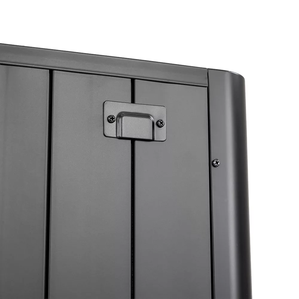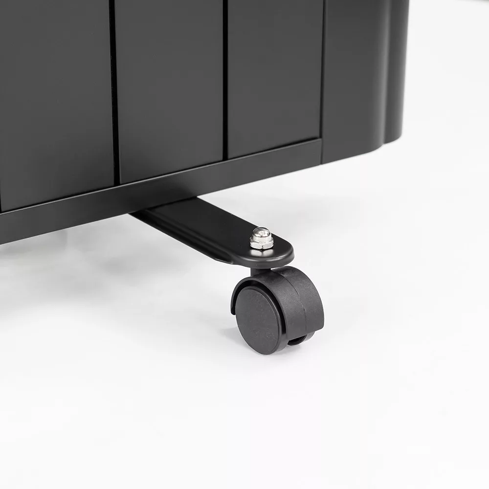 Grzejnik elektryczny leziter Solis zajmuje niewiele miejsca, gdy jest zamontowany na ścianie, a nóżki i kółka pozwalają na używanie go jako grzejnika wolnostojącego. W razie potrzeby można go łatwo przenosić z jednego pomieszczenia do drugiego, zachowując stabilność, bezpieczeństwo i stałą pozycję.