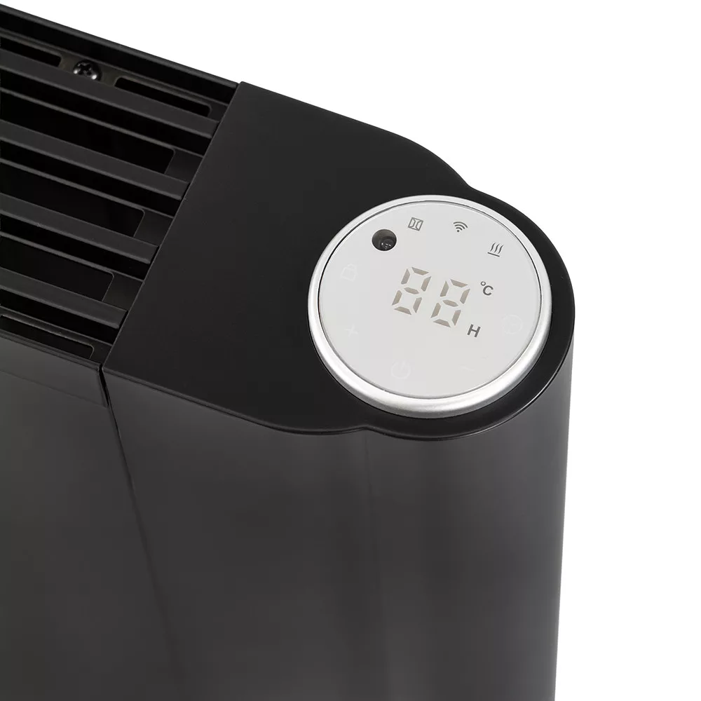 Zabezpieczenie przed przegrzaniem gwarantuje niezawodne działanie, a stopień ochrony IP24 umożliwia korzystanie z urządzenia nawet w łazienkach. Okrągły cyfrowy panel sterowania wpuszczony w górną część zapewnia łatwą i przejrzystą obsługę: wyświetlacz pokazuje ustawioną temperaturę, a okrągłe ikony wskazują stan funkcji.