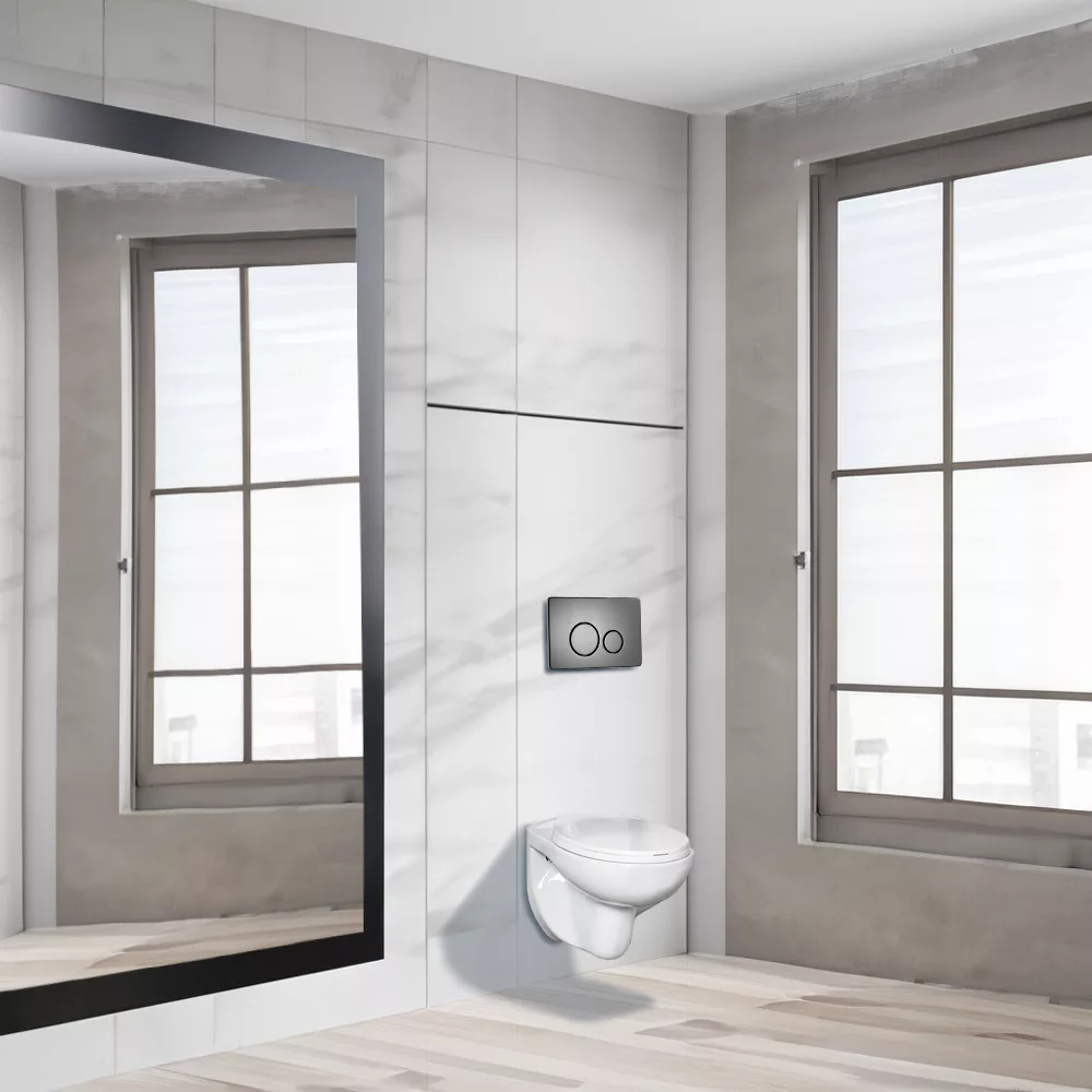 Płytka dociskowa do toalety ROYA 021 Chrome jest łatwa w użyciu. Proste przyciski pozwalają z łatwością kontrolować spłukiwanie.