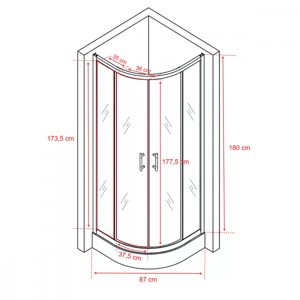 - Typ: zakrzywiona kabina prysznicowa bez brodzika