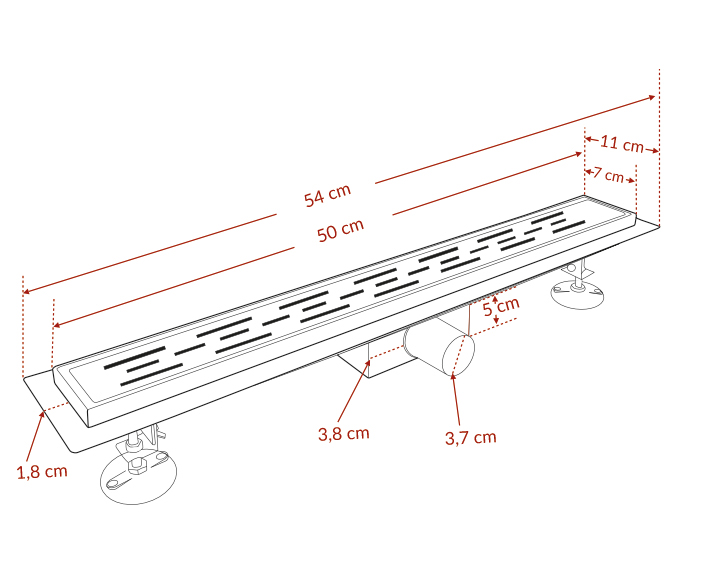 Estetyczny, nowoczesny design. Bezbarierowa instalacja bez progów. Większa wydajność odprowadzania wody, idealna do dużych głowic prysznicowych. Elastyczne możliwości montażu (przy ścianie, pośrodku, przy wejściu). Łatwe czyszczenie, dostęp do syfonu. Możliwość wpuszczenia w płaszczyznę podłogi.