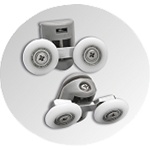 Wyposażona w wytrzymałe podwójne rolki. Ułatwiają otwieranie i zamykanie kabiny. Lepsze rozłożenie ciężaru kabiny na rolkach. |