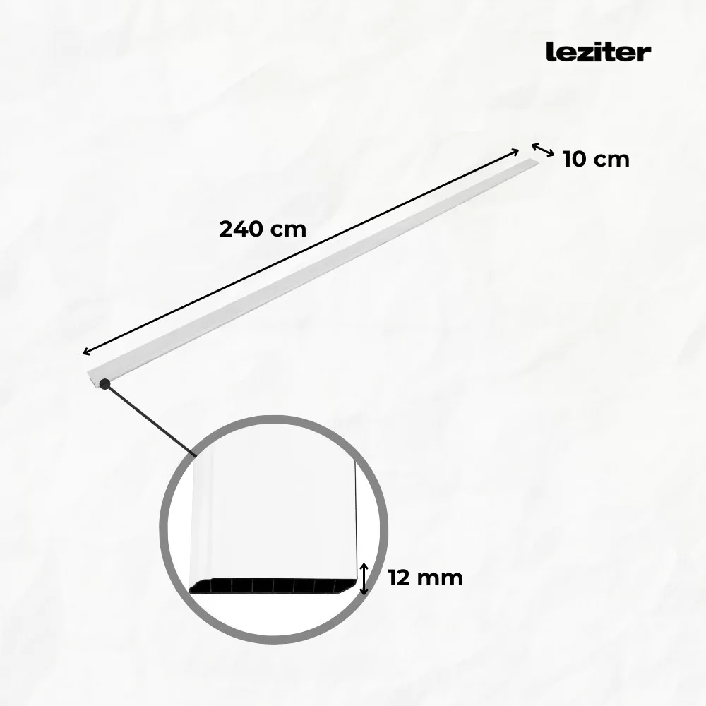 Ta listwa podłogowa stanowi doskonałe uzupełnienie podłóg Vinyl SPC, zwłaszcza w kolorze śnieżnobiałym. Długość 2400 mm, wysokość 60 mm i grubość 12 mm zapewniają estetyczne przejście między podłogą a ścianą. Ta listwa krawędziowa została zaprojektowana specjalnie do podłóg Leziter Vinyl SPC i stanowi idealne uzupełnienie podłóg w kolorze śnieżnobiałym.Kluczowe cechy: